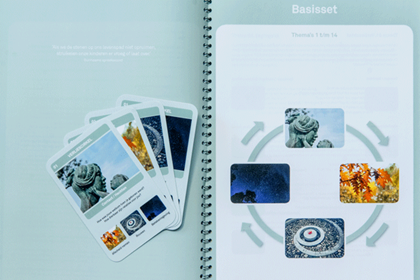 Het Labyrinthoss® Rouwkwartet is gebaseerd op de Verliescirkel. Dit is een cyclische voorstelling van een gezond rouwproces, die toegepast kan worden bij elk soort verlies. Waar de rouwende in de cirkel staat, is afhankelijk van hoe hij of zij de verschillende gebeurtenissen en ervaringen met elkaar verbindt, hoe ze worden geïnterpreteerd en hoe de persoon er betekenis aan toekent. Tezamen vormt dit een verhaal met overtuigingen die invloed hebben op de kijk op het leven en de toekomst. Door het spel te spelen kunnen mensen hun eigen verhaal delen en vergelijken met verhalen van anderen of kijken hoe hun verhaal in de thema’s past. Zo krijgen mensen spelenderwijs inzicht in waar zij staan in het rouwproces. Er kan een verandering plaatsvinden die zorgt voor andere overtuigingen en eventueel een wending in het leven. Hierdoor kan de cyclus van de Verliescirkel verder bewandeld worden en kan een (nieuwe) betekenis gegeven worden aan het verlies. NB Versie van Labyrinthoss® Rouwkwartet uit 2017 is per 1 janauari 2021 herzien. Dit houdt in dat de handleiding meer theoretische informatie biedt en het kwartet zelf uitgebreid is met een extra set Overige Thema's met 6 kwartetten, te weten: Per 2024 wordt de handleiding digitaal aangeleverd. | |